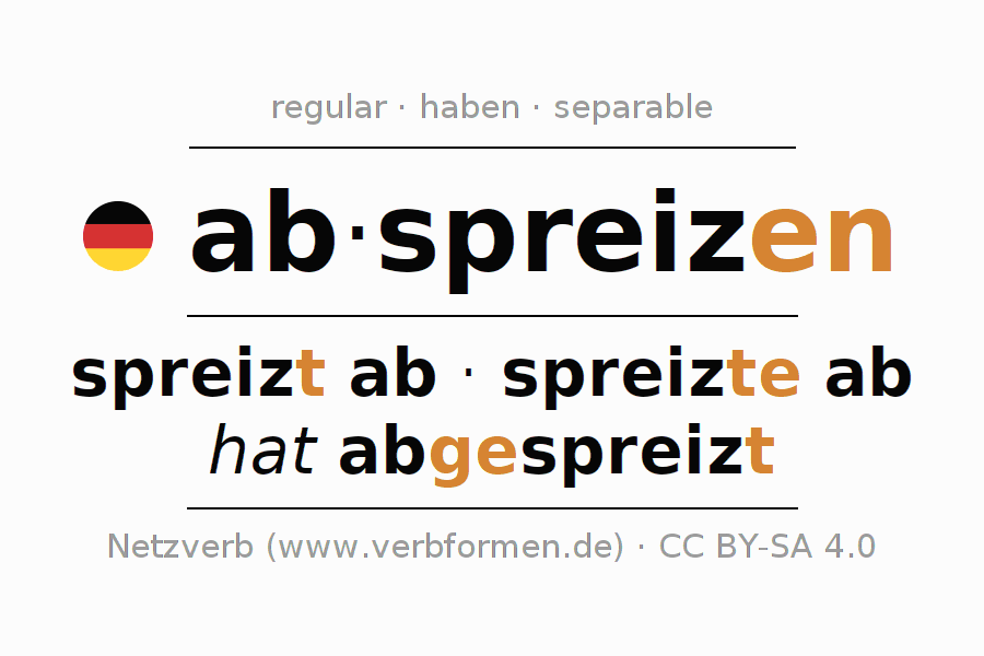 | ich | spreiz(e) ab | spreizte ab | spreize ab | spreizte ab | - |