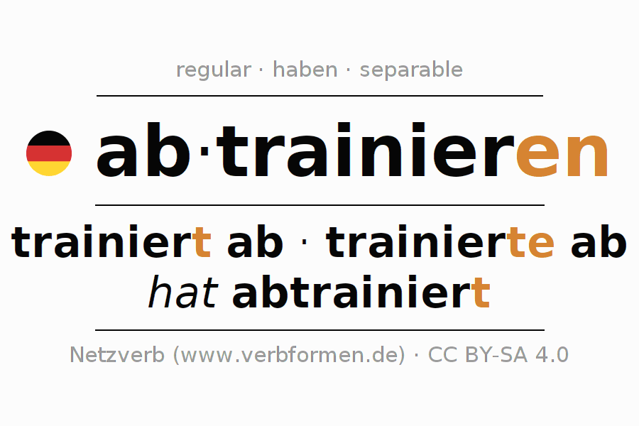 - Present: ich trainiere ab, du trainierest ab, er trainiere ab, wir trainieren ab, ihr trainieret ab, sie trainieren ab