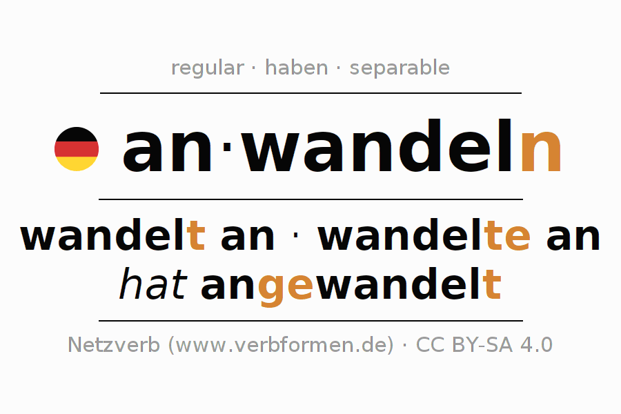 - Present: wand(e)l(e) (du) an, wandeln wir an, wandelt (ihr) an, wandeln Sie an