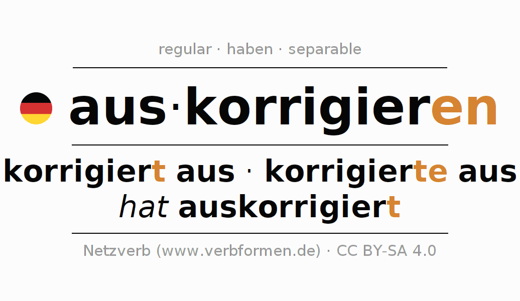- Present: korrigier(e) (du) aus, korrigieren wir aus, korrigiert (ihr) aus, korrigieren Sie aus