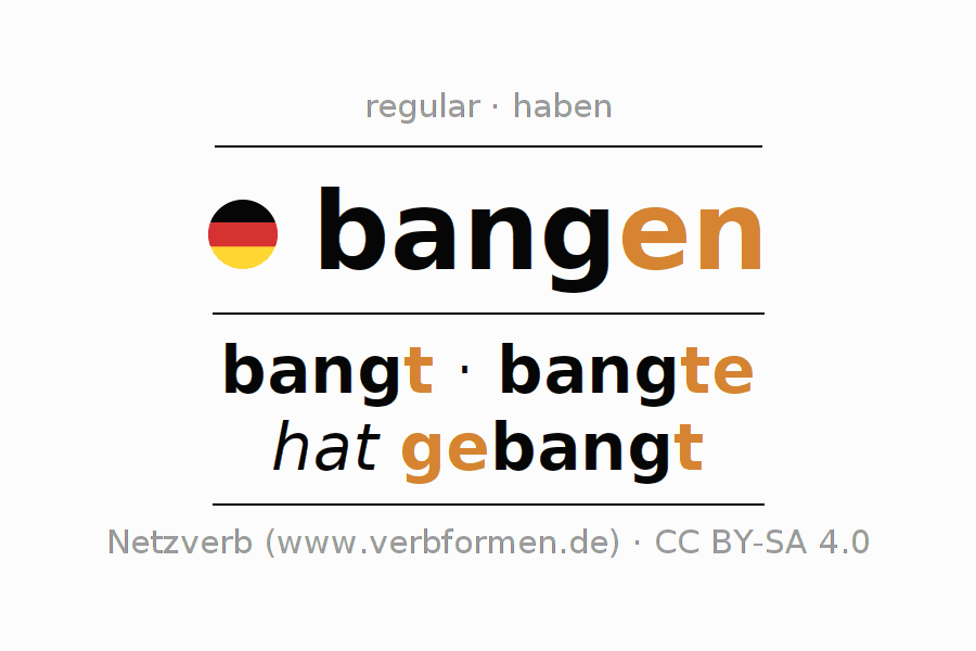 - Perfect: ich habe gebangt, du hast gebangt, er hat gebangt, wir haben gebangt, ihr habt gebangt, sie haben gebangt
