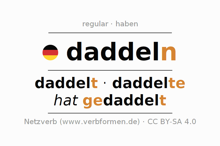- Perfect: ich habe gedaddelt, du hast gedaddelt, er hat gedaddelt, wir haben gedaddelt, ihr habt gedaddelt, sie haben gedaddelt