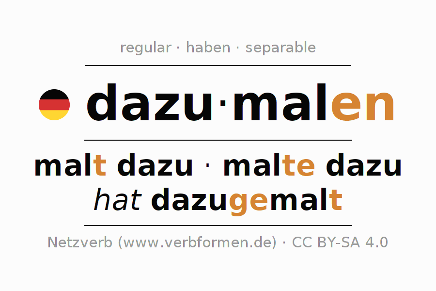 - Present: ich mal(e) dazu, du malst dazu, er malt dazu, wir malen dazu, ihr malt dazu, sie malen dazu