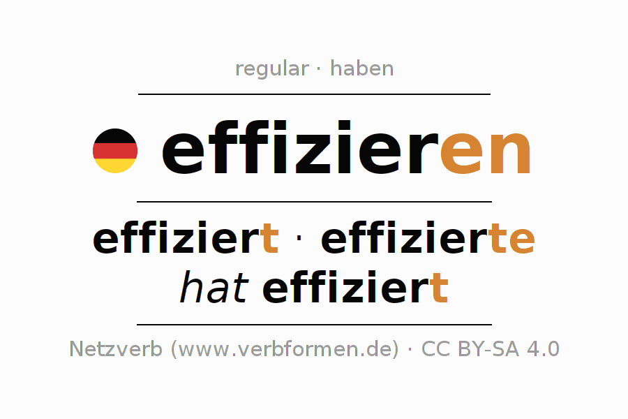 - Present: effizier(e) (du), effizieren wir, effiziert (ihr), effizieren Sie