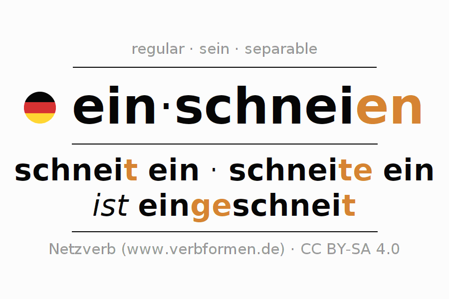- Present: schnei(e) (du) ein, schnei(e)n wir ein, schneit (ihr) ein, schnei(e)n Sie ein