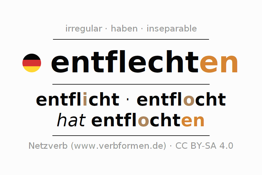 - Present: entflicht (du), entflechten wir, entflechtet (ihr), entflechten Sie