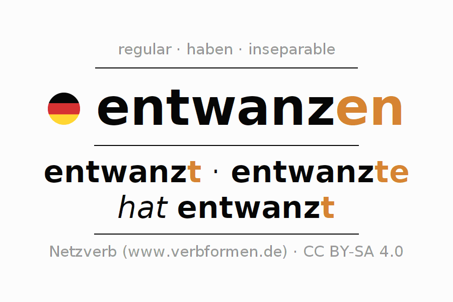 - Present: entwanz(e) (du), entwanzen wir, entwanzt (ihr), entwanzen Sie