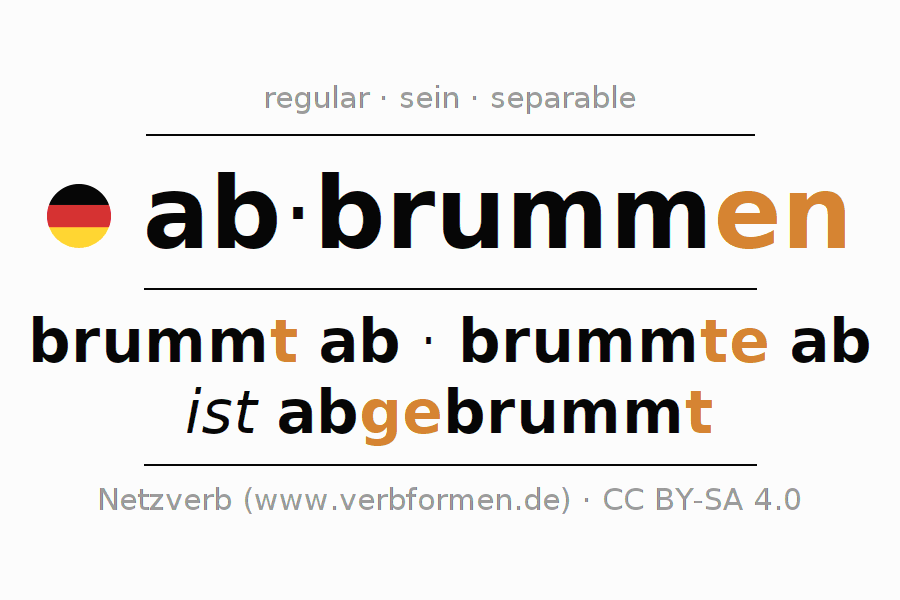 Examples for using the conjugation of the verb abbrummen. These are real sentences and sentences from the project Tatoeba. For each conjugated form, such a sentence example is displayed. The verb form is highlighted. If there are more than one sentence, an example with the German verb abbrummen (ist) is selected. In order to understand the conjugation not only by the examples, but also to train, worksheets for the verb abbrummen are available.