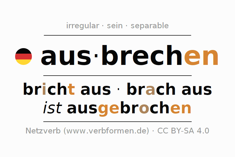 Examples for using the conjugation of the verb ausbrechen. These are real sentences and sentences from the project Tatoeba. For each conjugated form, such a sentence example is displayed. The verb form is highlighted. If there are more than one sentence, an example with the German verb ausbrechen is selected. In order to understand the conjugation not only by the examples, but also to train, worksheets for the verb ausbrechen are available.