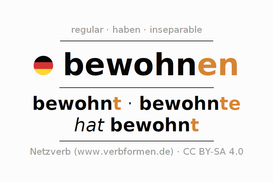 Examples for using the conjugation of the verb bewohnen. These are real sentences and sentences from the project Tatoeba. For each conjugated form, such a sentence example is displayed. The verb form is highlighted. If there are more than one sentence, an example with the German verb bewohnen is selected. In order to understand the conjugation not only by the examples, but also to train, worksheets for the verb bewohnen are available.