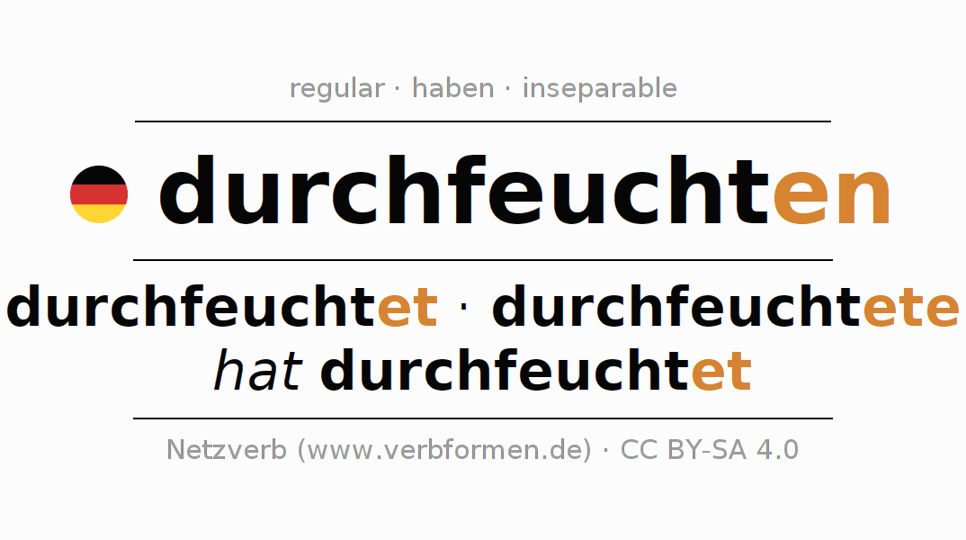 Examples for using the conjugation of the verb durchfeuchten. These are real sentences and sentences from the project Tatoeba. For each conjugated form, such a sentence example is displayed. The verb form is highlighted. If there are more than one sentence, an example with the German verb durchfeuchten is selected. In order to understand the conjugation not only by the examples, but also to train, worksheets for the verb durchfeuchten are available.