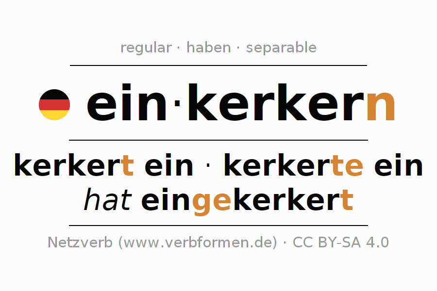 Examples for using the conjugation of the verb einkerkern. These are real sentences and sentences from the project Tatoeba. For each conjugated form, such a sentence example is displayed. The verb form is highlighted. If there are more than one sentence, an example with the German verb einkerkern is selected. In order to understand the conjugation not only by the examples, but also to train, worksheets for the verb einkerkern are available.