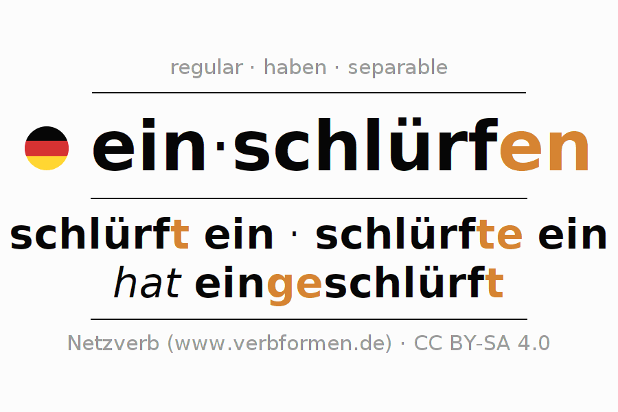 Examples for using the conjugation of the verb einschlürfen. These are real sentences and sentences from the project Tatoeba. For each conjugated form, such a sentence example is displayed. The verb form is highlighted. If there are more than one sentence, an example with the German verb einschlürfen is selected. In order to understand the conjugation not only by the examples, but also to train, worksheets for the verb einschlürfen are available.