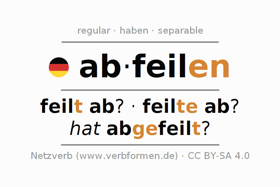 Examples for using the conjugation of the verb abfeilen. These are real sentences and sentences from the project Tatoeba. For each conjugated form, such a sentence example is displayed. The verb form is highlighted. If there are more than one sentence, an example with the German verb abfeilen is selected. In order to understand the conjugation not only by the examples, but also to train, worksheets for the verb abfeilen are available.