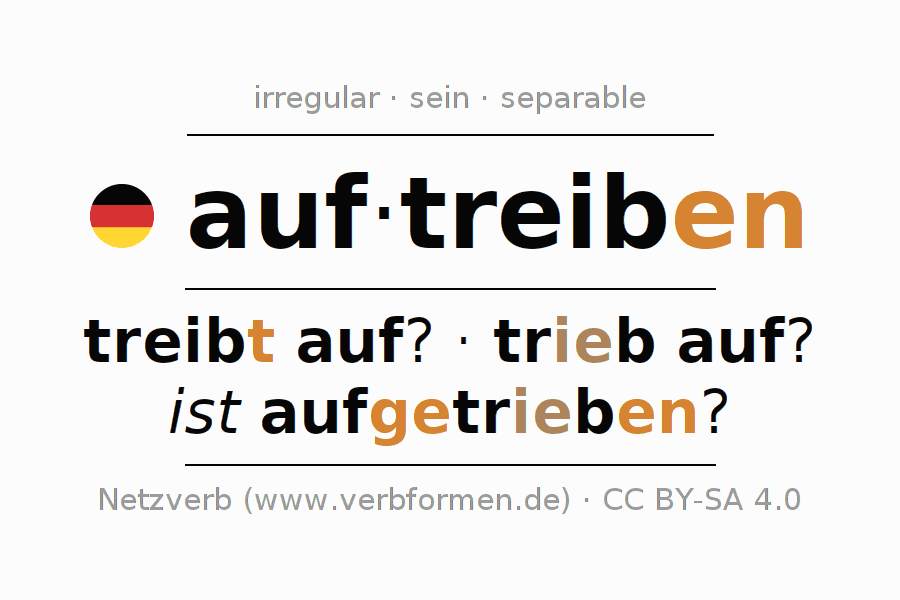 Examples for using the conjugation of the verb auftreiben. These are real sentences and sentences from the project Tatoeba. For each conjugated form, such a sentence example is displayed. The verb form is highlighted. If there are more than one sentence, an example with the German verb auftreiben (ist) is selected. In order to understand the conjugation not only by the examples, but also to train, worksheets for the verb auftreiben are available.