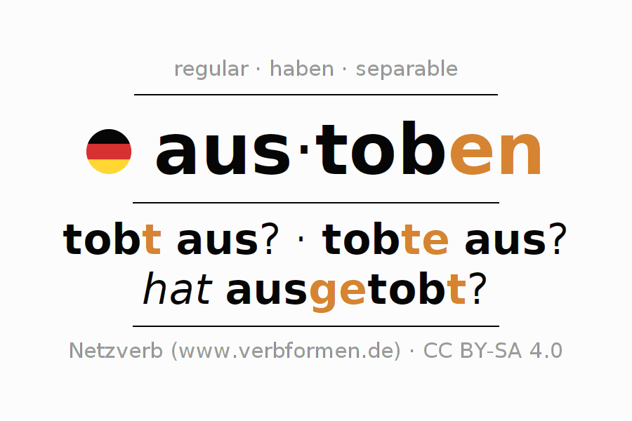Examples for using the conjugation of the verb austoben. These are real sentences and sentences from the project Tatoeba. For each conjugated form, such a sentence example is displayed. The verb form is highlighted. If there are more than one sentence, an example with the German verb austoben is selected. In order to understand the conjugation not only by the examples, but also to train, worksheets for the verb austoben are available.