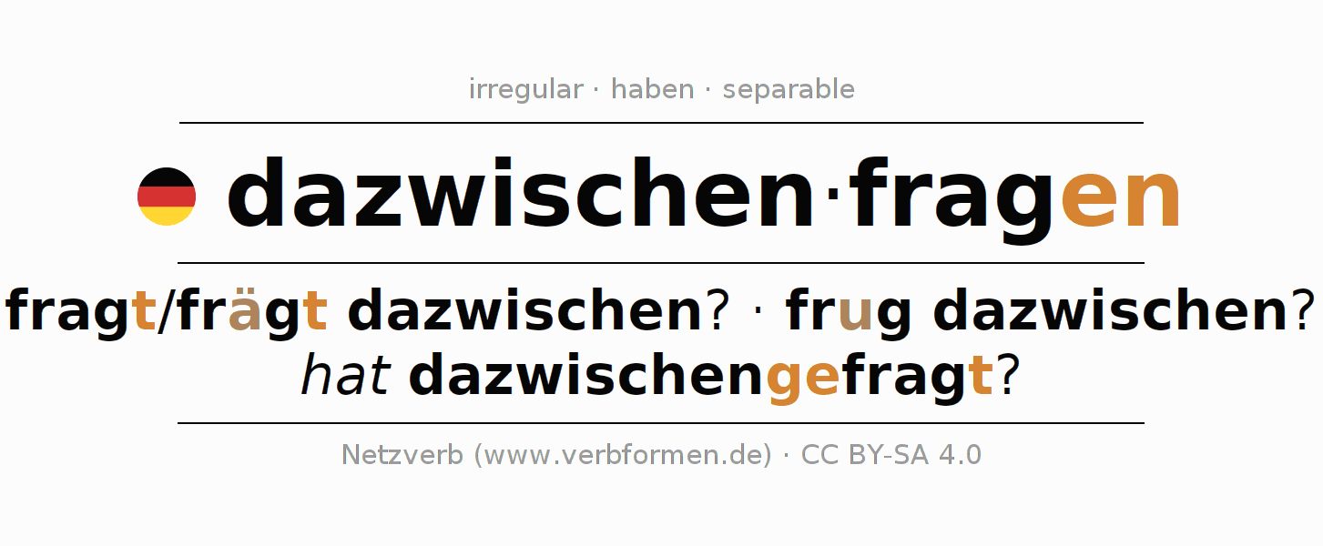 Meanings and synonyms of dazwischenfragen (unr)Conjugation rules