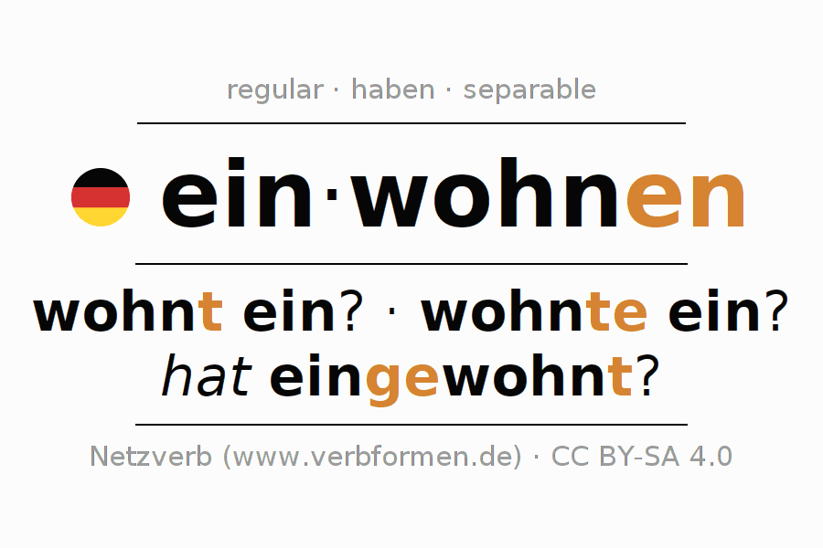 Examples for using the conjugation of the verb einwohnen. These are real sentences and sentences from the project Tatoeba. For each conjugated form, such a sentence example is displayed. The verb form is highlighted. If there are more than one sentence, an example with the German verb einwohnen is selected. In order to understand the conjugation not only by the examples, but also to train, worksheets for the verb einwohnen are available.
