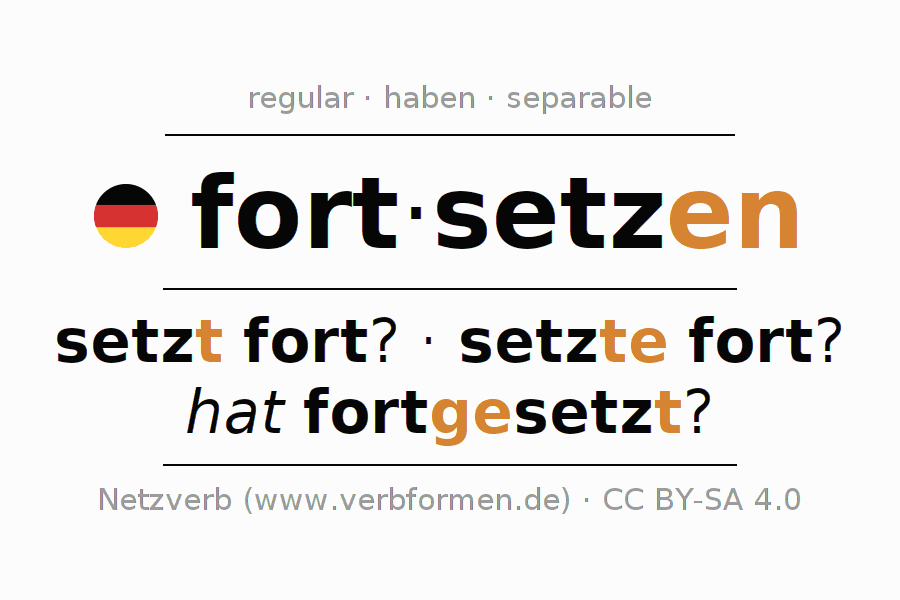 Examples for using the conjugation of the verb fortsetzen. These are real sentences and sentences from the project Tatoeba. For each conjugated form, such a sentence example is displayed. The verb form is highlighted. If there are more than one sentence, an example with the German verb fortsetzen is selected. In order to understand the conjugation not only by the examples, but also to train, worksheets for the verb fortsetzen are available.