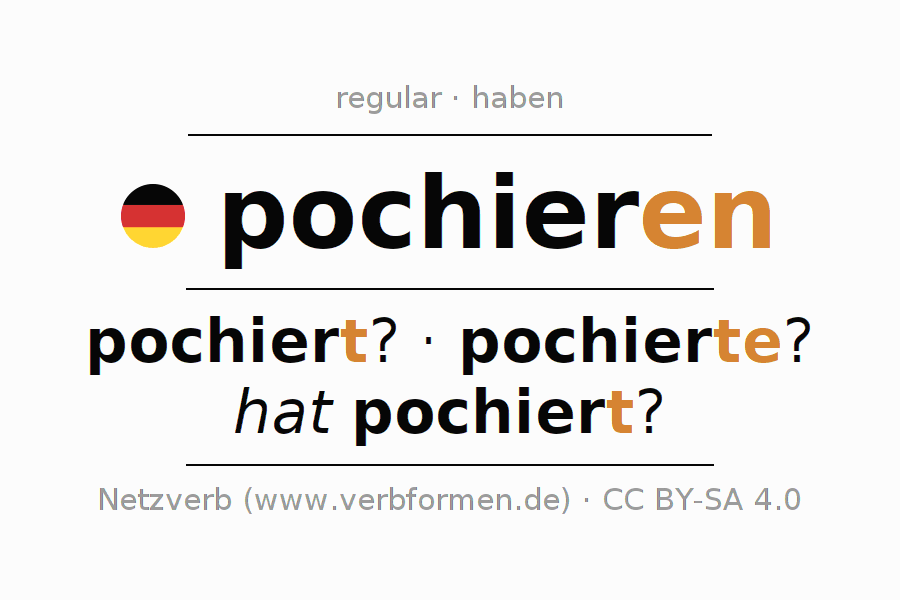 Examples for using the conjugation of the verb pochieren. These are real sentences and sentences from the project Tatoeba. For each conjugated form, such a sentence example is displayed. The verb form is highlighted. If there are more than one sentence, an example with the German verb pochieren is selected. In order to understand the conjugation not only by the examples, but also to train, worksheets for the verb pochieren are available.