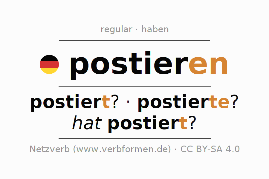 Examples for using the conjugation of the verb postieren. These are real sentences and sentences from the project Tatoeba. For each conjugated form, such a sentence example is displayed. The verb form is highlighted. If there are more than one sentence, an example with the German verb postieren is selected. In order to understand the conjugation not only by the examples, but also to train, worksheets for the verb postieren are available.
