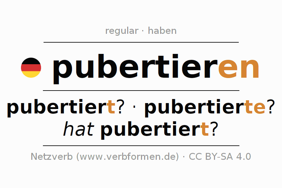 Examples for using the conjugation of the verb pubertieren. These are real sentences and sentences from the project Tatoeba. For each conjugated form, such a sentence example is displayed. The verb form is highlighted. If there are more than one sentence, an example with the German verb pubertieren is selected. In order to understand the conjugation not only by the examples, but also to train, worksheets for the verb pubertieren are available.