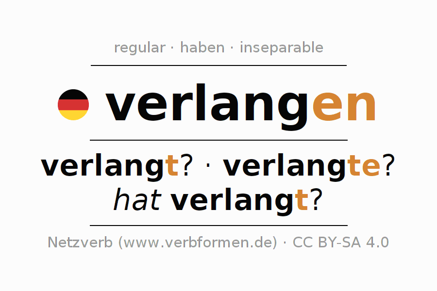 Examples for using the conjugation of the verb verlangen. These are real sentences and sentences from the project Tatoeba. For each conjugated form, such a sentence example is displayed. The verb form is highlighted. If there are more than one sentence, an example with the German verb verlangen is selected. In order to understand the conjugation not only by the examples, but also to train, worksheets for the verb verlangen are available.