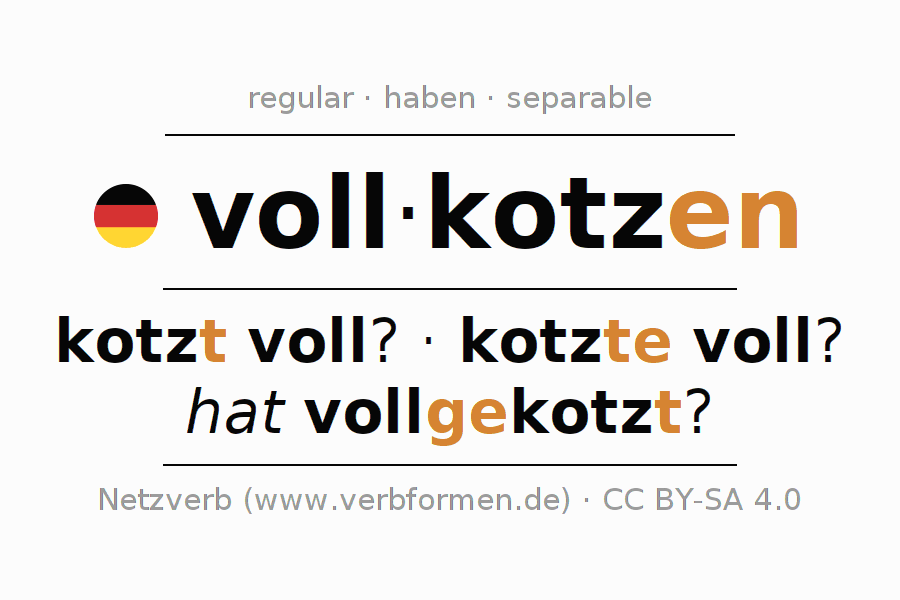- How do you conjugate vollkotzen in Infinitive?