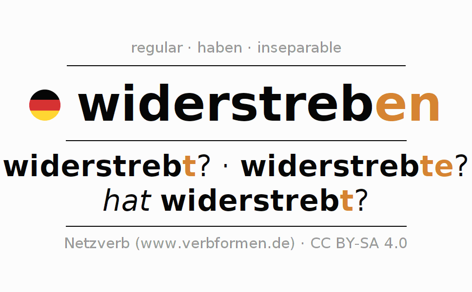 Examples for using the conjugation of the verb widerstreben. These are real sentences and sentences from the project Tatoeba. For each conjugated form, such a sentence example is displayed. The verb form is highlighted. If there are more than one sentence, an example with the German verb widerstreben is selected. In order to understand the conjugation not only by the examples, but also to train, worksheets for the verb widerstreben are available.