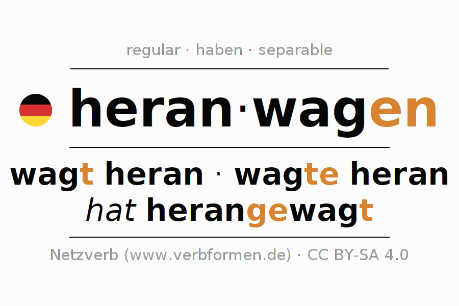 Meanings and synonyms of heranwagenConjugation rules