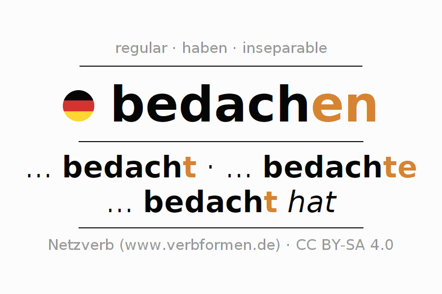 Examples for using the conjugation of the verb bedachen. These are real sentences and sentences from the project Tatoeba. For each conjugated form, such a sentence example is displayed. The verb form is highlighted. If there are more than one sentence, an example with the German verb bedachen is selected. In order to understand the conjugation not only by the examples, but also to train, worksheets for the verb bedachen are available.