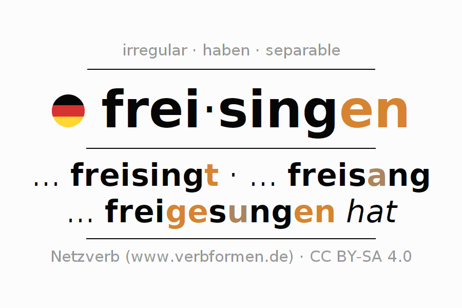 Examples for using the conjugation of the verb freisingen. These are real sentences and sentences from the project Tatoeba. For each conjugated form, such a sentence example is displayed. The verb form is highlighted. If there are more than one sentence, an example with the German verb freisingen is selected. In order to understand the conjugation not only by the examples, but also to train, worksheets for the verb freisingen are available.