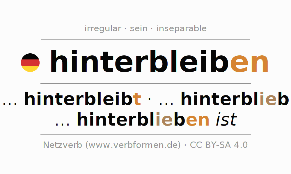 Examples for using the conjugation of the verb hinterbleiben. These are real sentences and sentences from the project Tatoeba. For each conjugated form, such a sentence example is displayed. The verb form is highlighted. If there are more than one sentence, an example with the German verb hinterbleiben is selected. In order to understand the conjugation not only by the examples, but also to train, worksheets for the verb hinterbleiben are available.