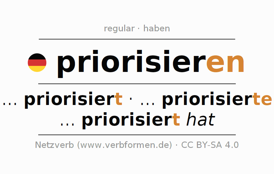 Examples for using the conjugation of the verb priorisieren. These are real sentences and sentences from the project Tatoeba. For each conjugated form, such a sentence example is displayed. The verb form is highlighted. If there are more than one sentence, an example with the German verb priorisieren is selected. In order to understand the conjugation not only by the examples, but also to train, worksheets for the verb priorisieren are available.