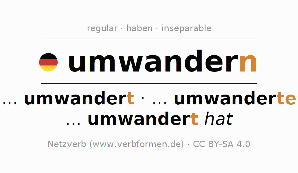 Examples for using the conjugation of the verb umwandern. These are real sentences and sentences from the project Tatoeba. For each conjugated form, such a sentence example is displayed. The verb form is highlighted. If there are more than one sentence, an example with the German verb umwandern is selected. In order to understand the conjugation not only by the examples, but also to train, worksheets for the verb umwandern are available.