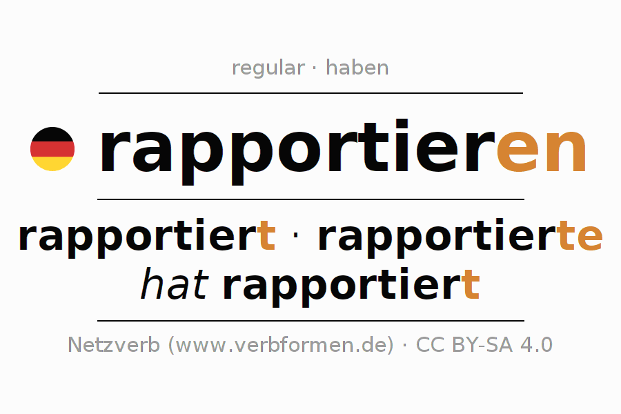 Examples for using the conjugation of the verb rapportieren. These are real sentences and sentences from the project Tatoeba. For each conjugated form, such a sentence example is displayed. The verb form is highlighted. If there are more than one sentence, an example with the German verb rapportieren is selected. In order to understand the conjugation not only by the examples, but also to train, worksheets for the verb rapportieren are available.