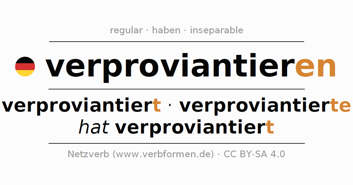 Examples for using the conjugation of the verb verproviantieren. These are real sentences and sentences from the project Tatoeba. For each conjugated form, such a sentence example is displayed. The verb form is highlighted. If there are more than one sentence, an example with the German verb verproviantieren is selected. In order to understand the conjugation not only by the examples, but also to train, worksheets for the verb verproviantieren are available.