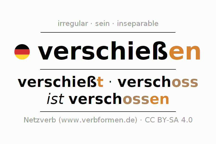 Examples for using the conjugation of the verb verschießen. These are real sentences and sentences from the project Tatoeba. For each conjugated form, such a sentence example is displayed. The verb form is highlighted. If there are more than one sentence, an example with the German verb verschießen (ist) is selected. In order to understand the conjugation not only by the examples, but also to train, worksheets for the verb verschießen are available.