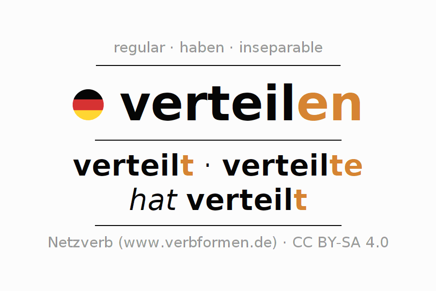 Examples for using the conjugation of the verb verteilen. These are real sentences and sentences from the project Tatoeba. For each conjugated form, such a sentence example is displayed. The verb form is highlighted. If there are more than one sentence, an example with the German verb verteilen is selected. In order to understand the conjugation not only by the examples, but also to train, worksheets for the verb verteilen are available.