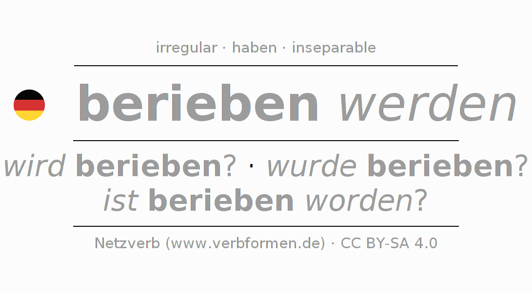 Examples for using the conjugation of the verb bereiben. These are real sentences and sentences from the project Tatoeba. For each conjugated form, such a sentence example is displayed. The verb form is highlighted. If there are more than one sentence, an example with the German verb bereiben is selected. In order to understand the conjugation not only by the examples, but also to train, worksheets for the verb bereiben are available.