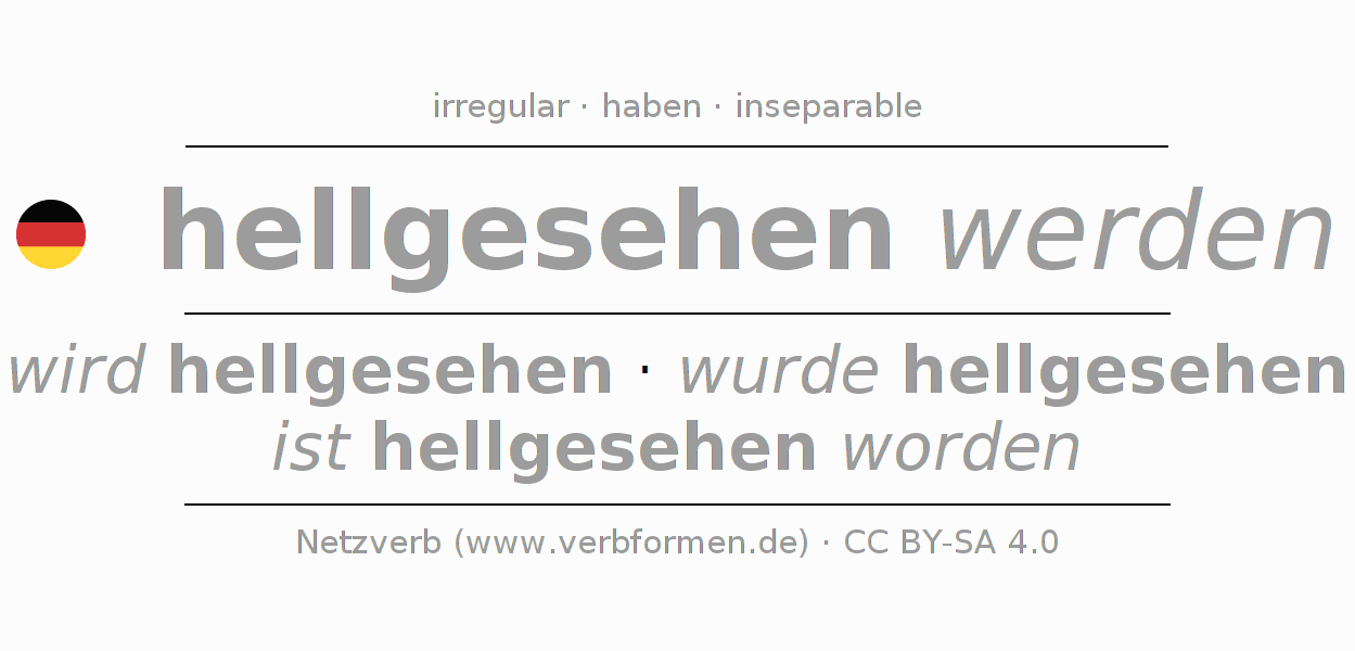 Examples for using the conjugation of the verb hellsehen. These are real sentences and sentences from the project Tatoeba. For each conjugated form, such a sentence example is displayed. The verb form is highlighted. If there are more than one sentence, an example with the German verb hellsehen is selected. In order to understand the conjugation not only by the examples, but also to train, worksheets for the verb hellsehen are available.