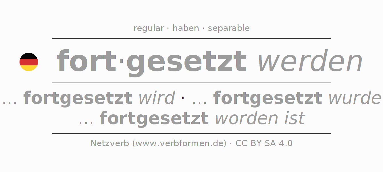Examples for using the conjugation of the verb fortsetzen. These are real sentences and sentences from the project Tatoeba. For each conjugated form, such a sentence example is displayed. The verb form is highlighted. If there are more than one sentence, an example with the German verb fortsetzen is selected. In order to understand the conjugation not only by the examples, but also to train, worksheets for the verb fortsetzen are available.