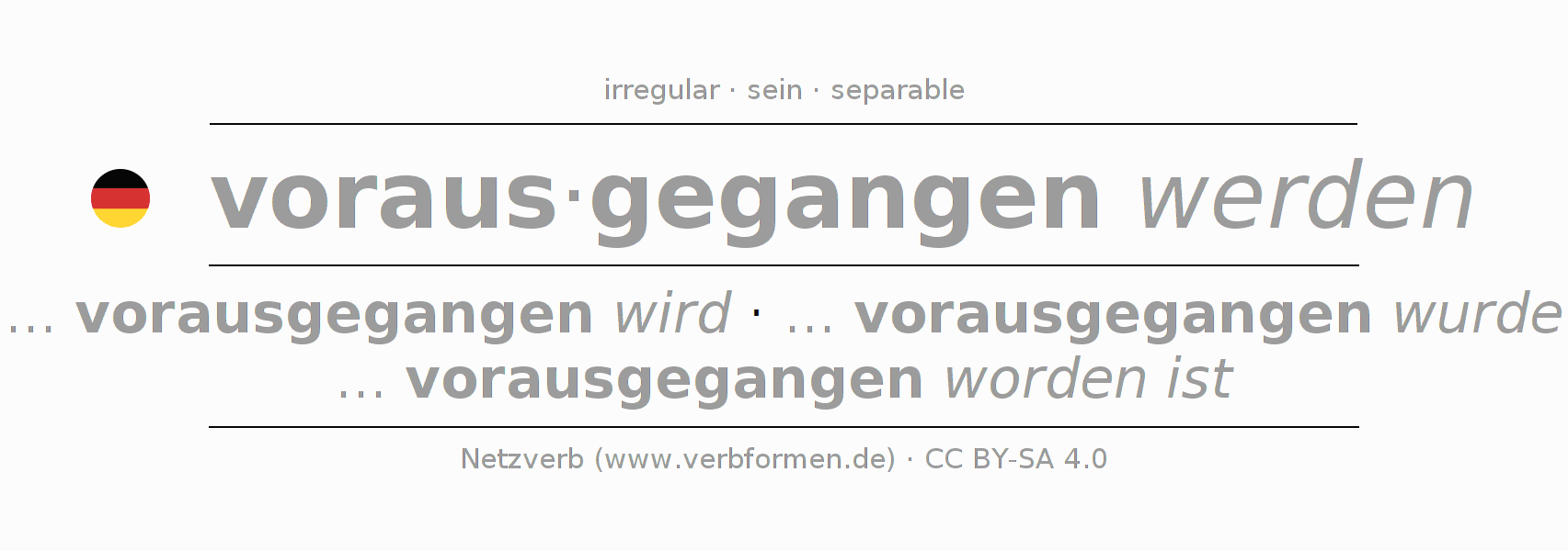 Examples for using the conjugation of the verb vorausgehen. These are real sentences and sentences from the project Tatoeba. For each conjugated form, such a sentence example is displayed. The verb form is highlighted. If there are more than one sentence, an example with the German verb vorausgehen is selected. In order to understand the conjugation not only by the examples, but also to train, worksheets for the verb vorausgehen are available.