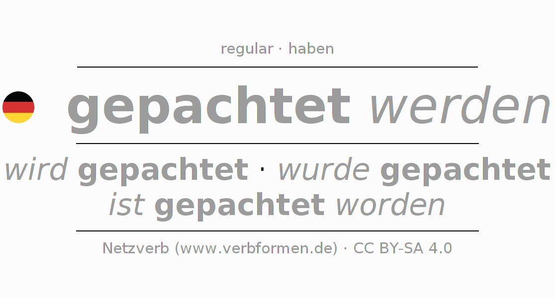 Examples for using the conjugation of the verb pachten. These are real sentences and sentences from the project Tatoeba. For each conjugated form, such a sentence example is displayed. The verb form is highlighted. If there are more than one sentence, an example with the German verb pachten is selected. In order to understand the conjugation not only by the examples, but also to train, worksheets for the verb pachten are available.