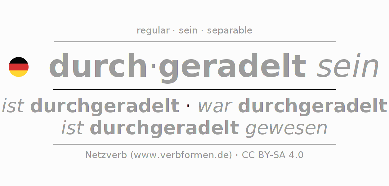 Examples for using the conjugation of the verb durchradeln. These are real sentences and sentences from the project Tatoeba. For each conjugated form, such a sentence example is displayed. The verb form is highlighted. If there are more than one sentence, an example with the German verb durch-radeln (ist) is selected. In order to understand the conjugation not only by the examples, but also to train, worksheets for the verb durchradeln are available.