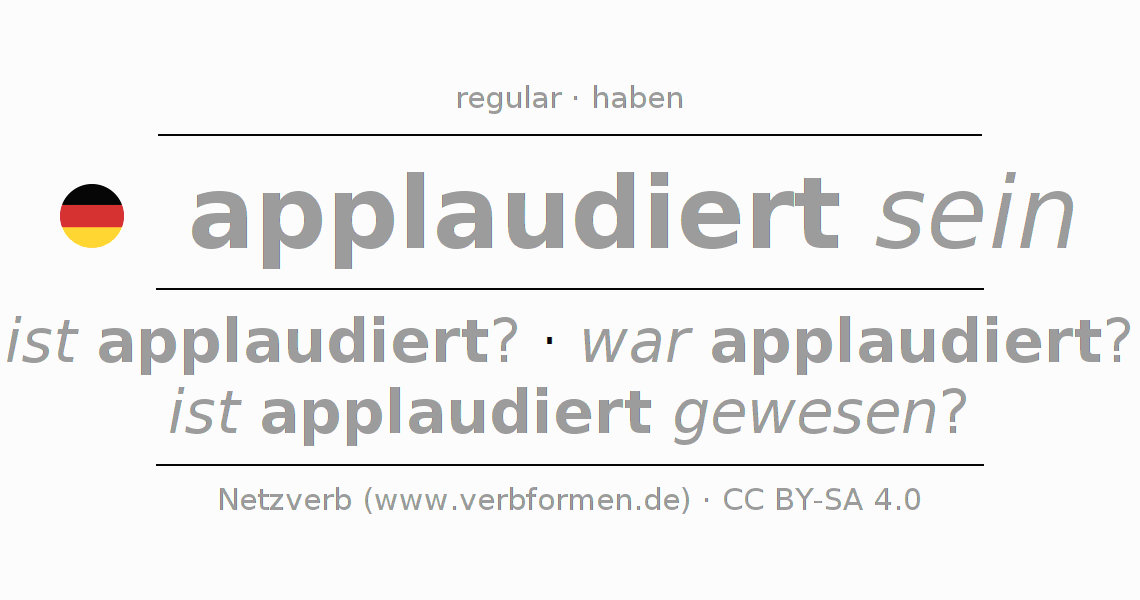 Examples for using the conjugation of the verb applaudieren. These are real sentences and sentences from the project Tatoeba. For each conjugated form, such a sentence example is displayed. The verb form is highlighted. If there are more than one sentence, an example with the German verb applaudieren is selected. In order to understand the conjugation not only by the examples, but also to train, worksheets for the verb applaudieren are available.
