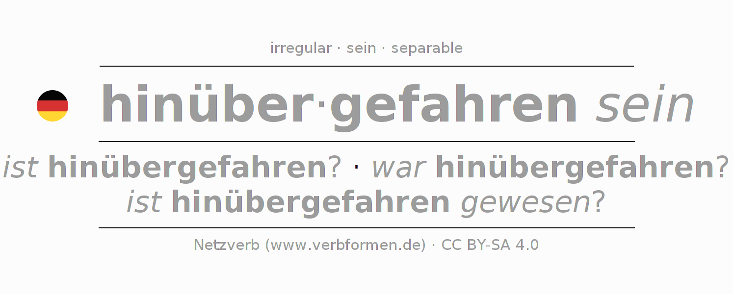 Examples for using the conjugation of the verb hinüberfahren. These are real sentences and sentences from the project Tatoeba. For each conjugated form, such a sentence example is displayed. The verb form is highlighted. If there are more than one sentence, an example with the German verb hinüberfahren (ist) is selected. In order to understand the conjugation not only by the examples, but also to train, worksheets for the verb hinüberfahren are available.