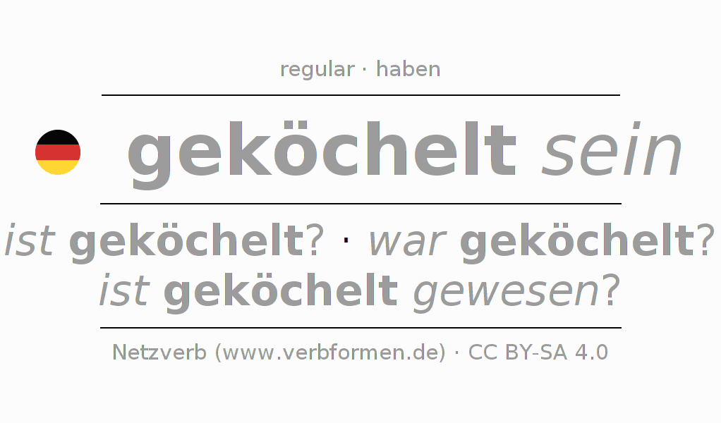 Examples for using the conjugation of the verb köcheln. These are real sentences and sentences from the project Tatoeba. For each conjugated form, such a sentence example is displayed. The verb form is highlighted. If there are more than one sentence, an example with the German verb köcheln is selected. In order to understand the conjugation not only by the examples, but also to train, worksheets for the verb köcheln are available.