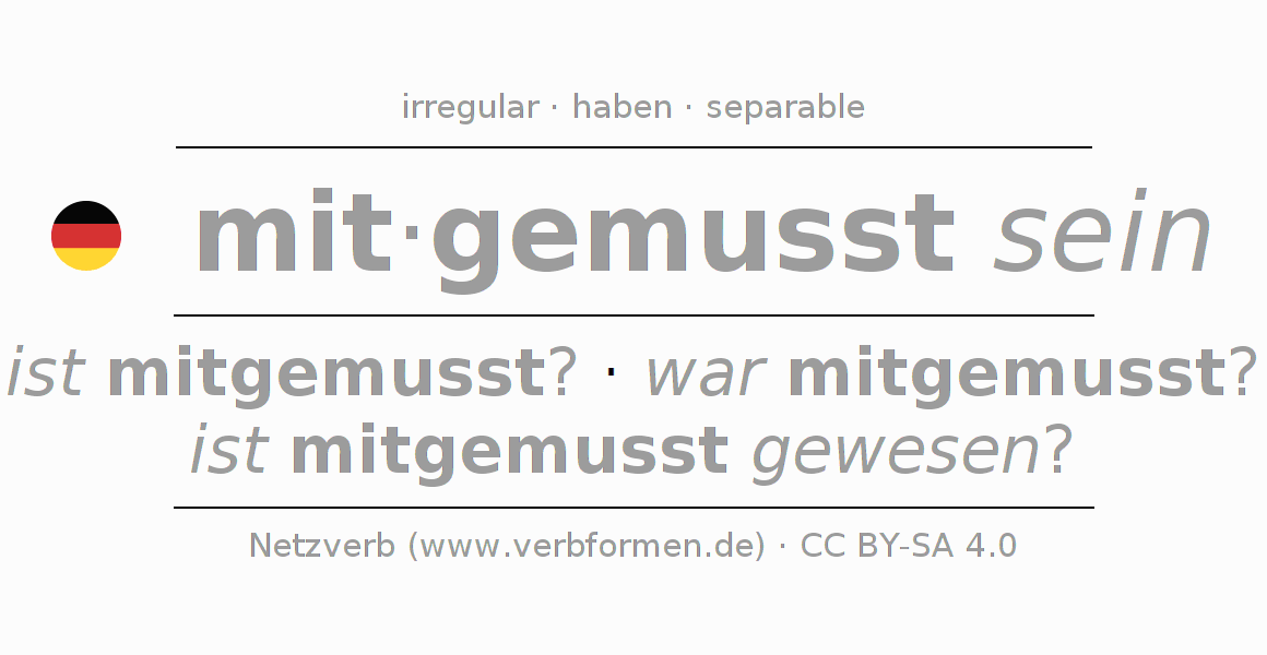 Examples for using the conjugation of the verb mitmüssen. These are real sentences and sentences from the project Tatoeba. For each conjugated form, such a sentence example is displayed. The verb form is highlighted. If there are more than one sentence, an example with the German verb mitmüssen is selected. In order to understand the conjugation not only by the examples, but also to train, worksheets for the verb mitmüssen are available.