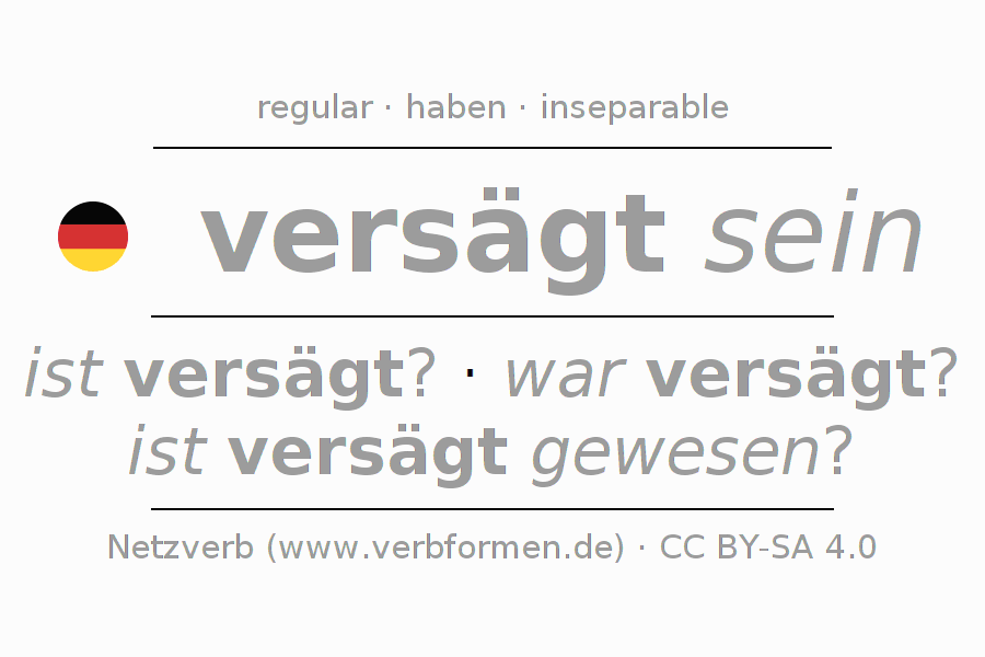 Examples for using the conjugation of the verb versägen. These are real sentences and sentences from the project Tatoeba. For each conjugated form, such a sentence example is displayed. The verb form is highlighted. If there are more than one sentence, an example with the German verb versägen is selected. In order to understand the conjugation not only by the examples, but also to train, worksheets for the verb versägen are available.